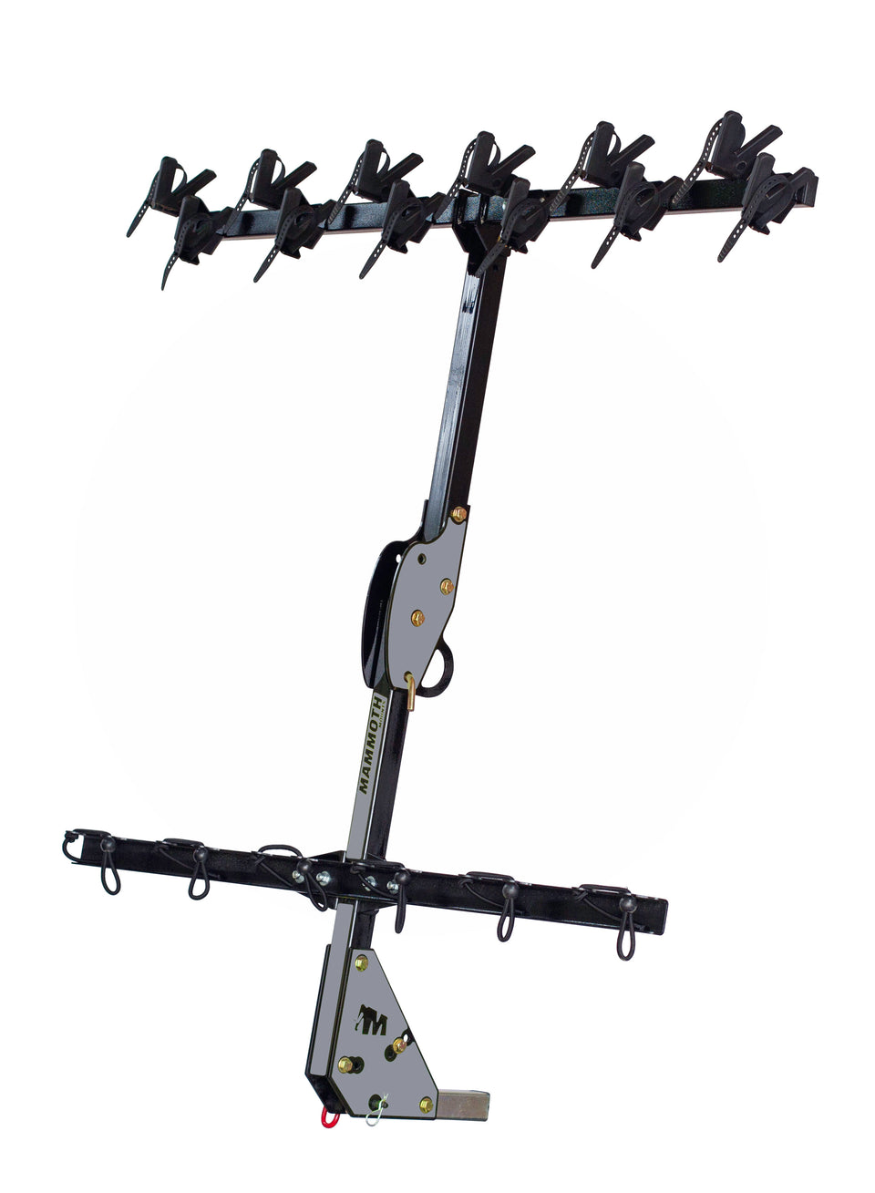 The Mammoth Mounts wall mounted hitch receiver securely bolts to any stud with the included lag bolts and holds a 4 or 6 bike Mammoth rack or many other racks with a 2” hitch.